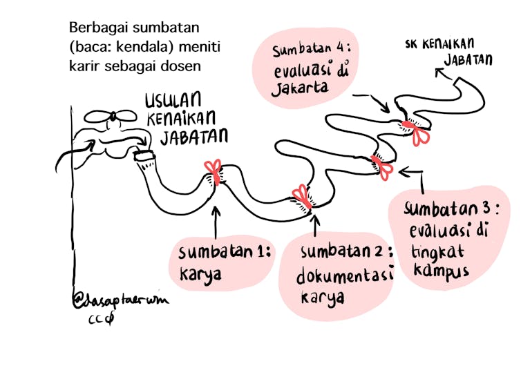 Ada satu saja tim penilai yang menilai karya-karya ilmiah seorang dosen kurang ‘nyambung’, maka proses kenaikan jabatan seorang dosen bisa terancam.